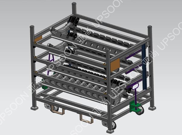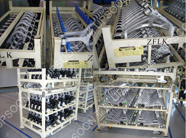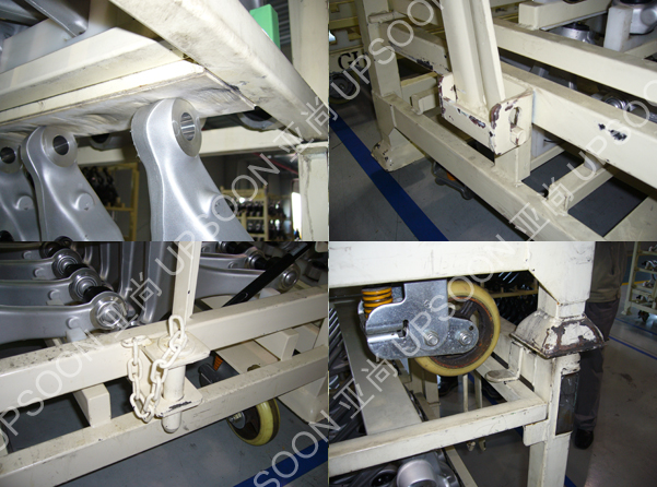 根據不同規格形狀的控制臂在工序間的流轉需求設計,使其運輸方便、安全。層框上面的固定塊可選用尼龍板、橡膠塊或聚氨酯。